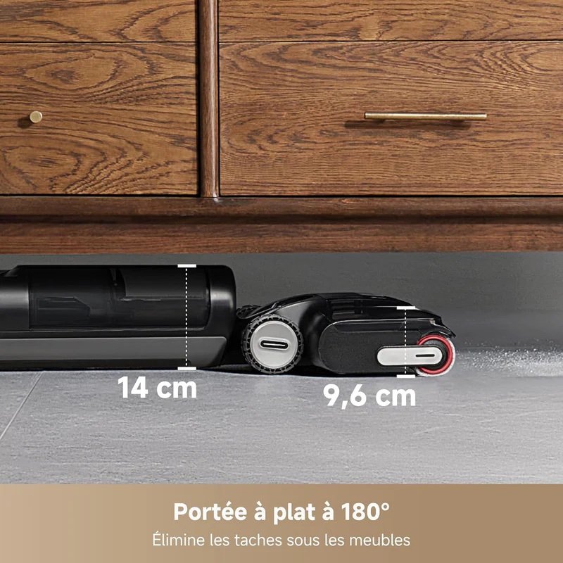 Nettoyage complet en un seul passage – Aspire, lave et sèche simultanément pour des sols impeccables sans effort supplémentaire.