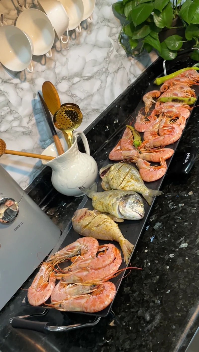 Une plaque géante qui vous permet de cuire plusieurs aliments en même temps : viandes, poissons, poulet, légumes, fruits de mer, sandwichs… idéale pour les grandes familles et les soirées entre amis.
