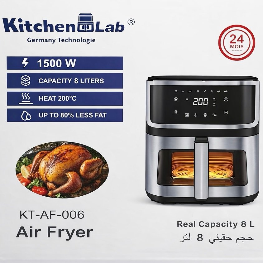 AirFryer inox 8L 1500W Numérique Avec écran Tablette et avec Fenêtre Visible KitchenLab KT-AF-006