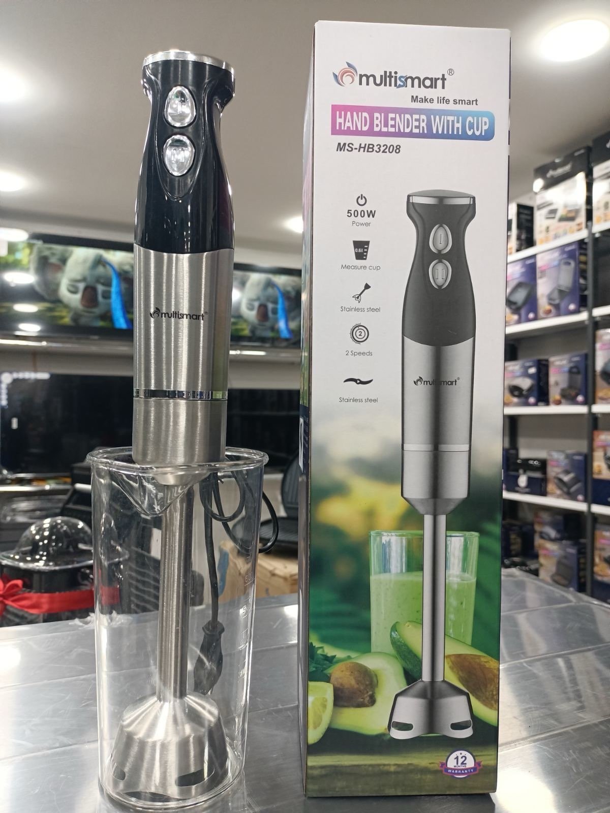 BRAS MIXEUR MULTISMAET 4 LAME ACIER INOX 2VITESSE +TASSE 500W INOX MS-HB3208