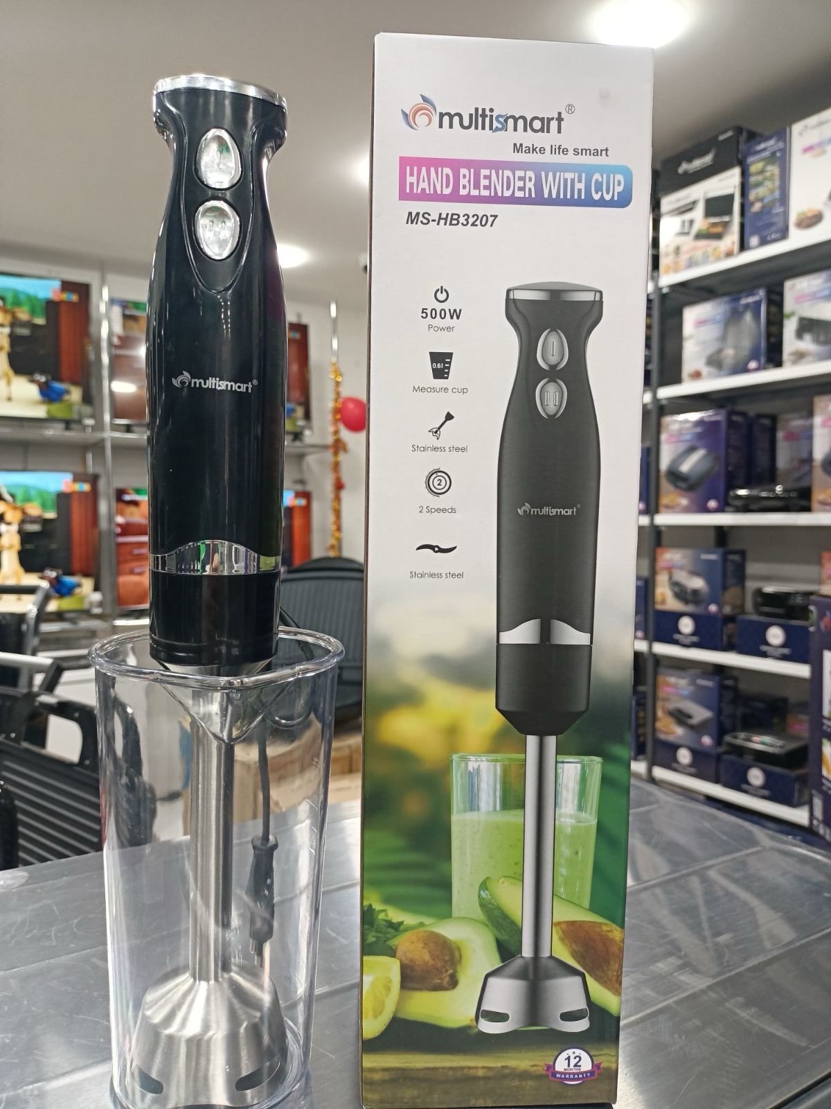 BRAS MIXEUR MULTISMAET 4 LAME ACIER INOX 2VITESSE +TASSE 500W MS-HB3207