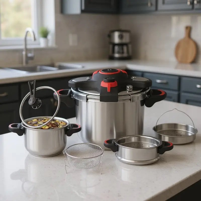 Cocotte minute clipso 11 pcs 5+7 L avec minuterie en Inox 18/10 Unipro UP-CM7+5SSR