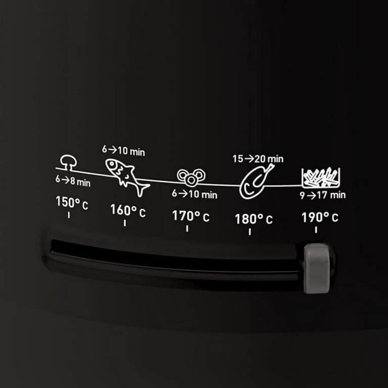 - Thermostat et voyant lumineux : Son thermostat vous permettra d’ajuster la cuisson de toutes vos recettes (frites, beignets, nems, tempuras…).