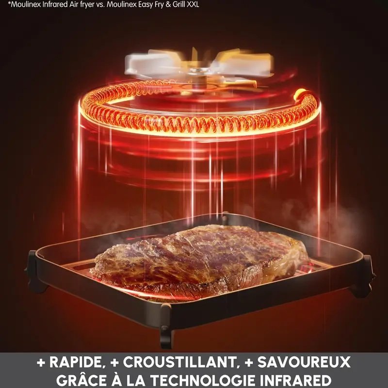 Friteuse Sans Huile Infrarouge 7L Avec 8 Modes Et maintien Au Chaud Cuisson Rapide Et Homogène Easy Fry Moulinex EZ831GF0