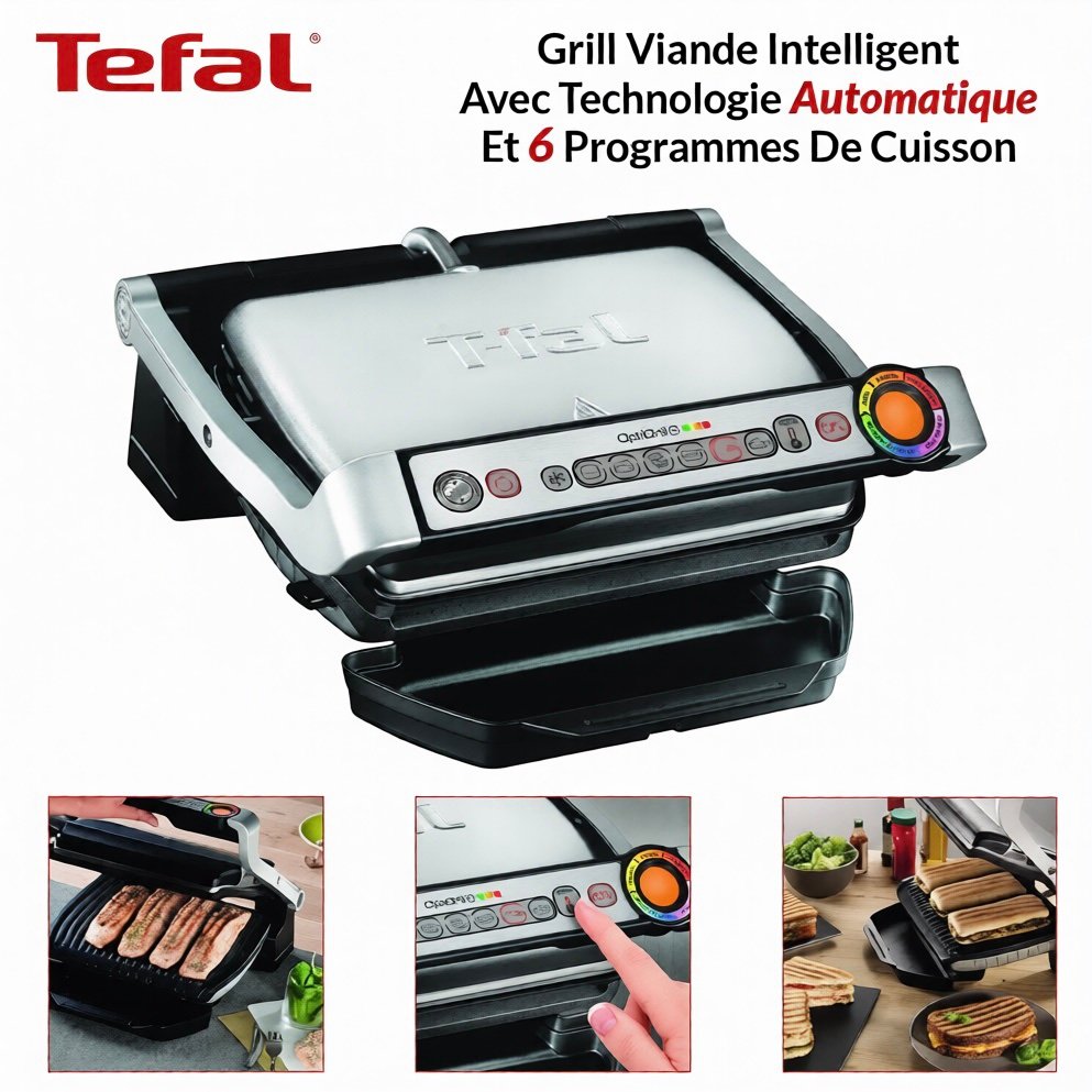 quantité de Grill Viande Intelligent Avec Technologie Automatique Et 6 Programmes De Cuisson 2000w OptiGrill Tefal GC712D12