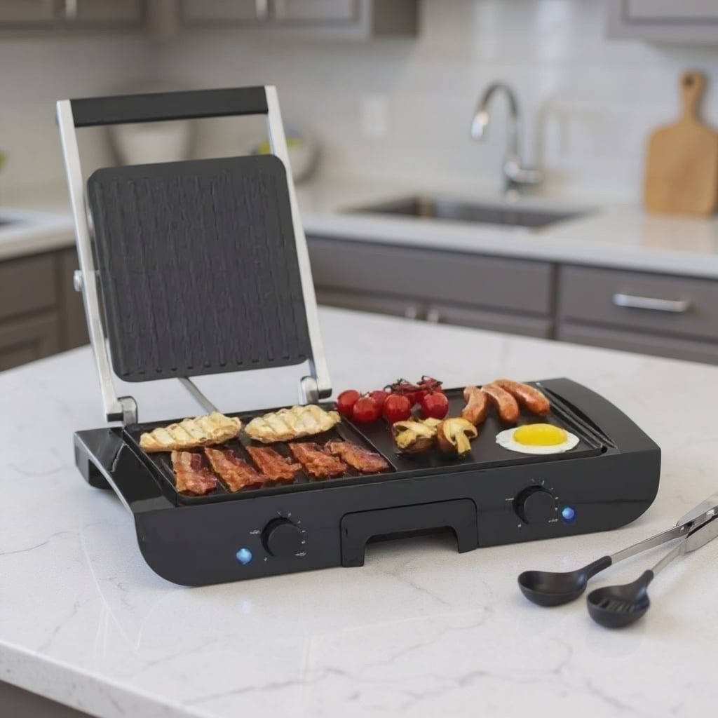 Planche a Grille et Panineuse inox 2 en 1 – 1500W 38×20 CM Multismart MS-GL1111